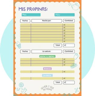 En nuestro libro, Giver y sus amigos, Giver el chanchito diseña una pizarra como esta con mamá chanchita, para recibir sus propinas asociadas con tareas de colaboración en el hogar.