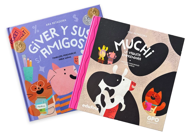• Libro 2: Muchi, la vaquita emprendedora. Diez historias que refuerzan el pilar de generación de ingresos dentro del universo de la gestión financiera.